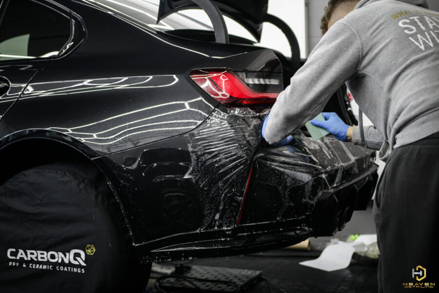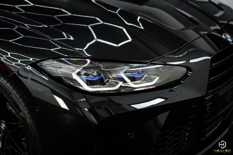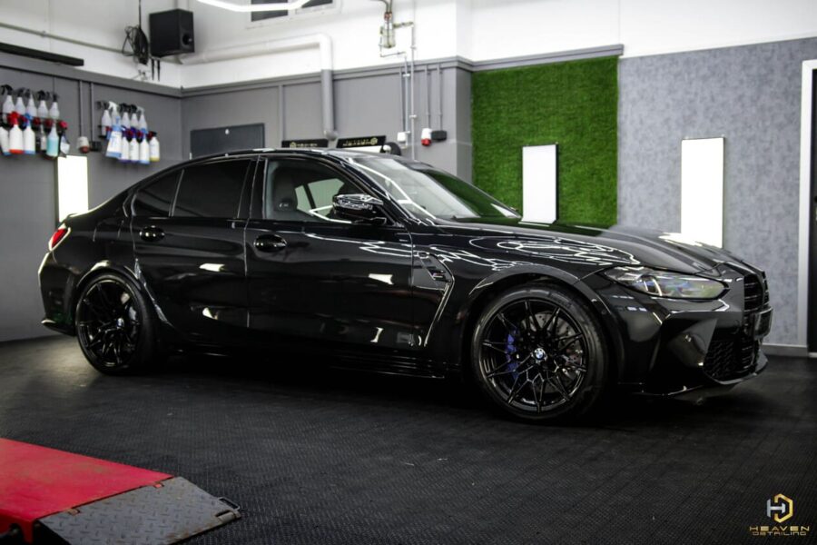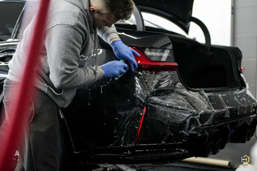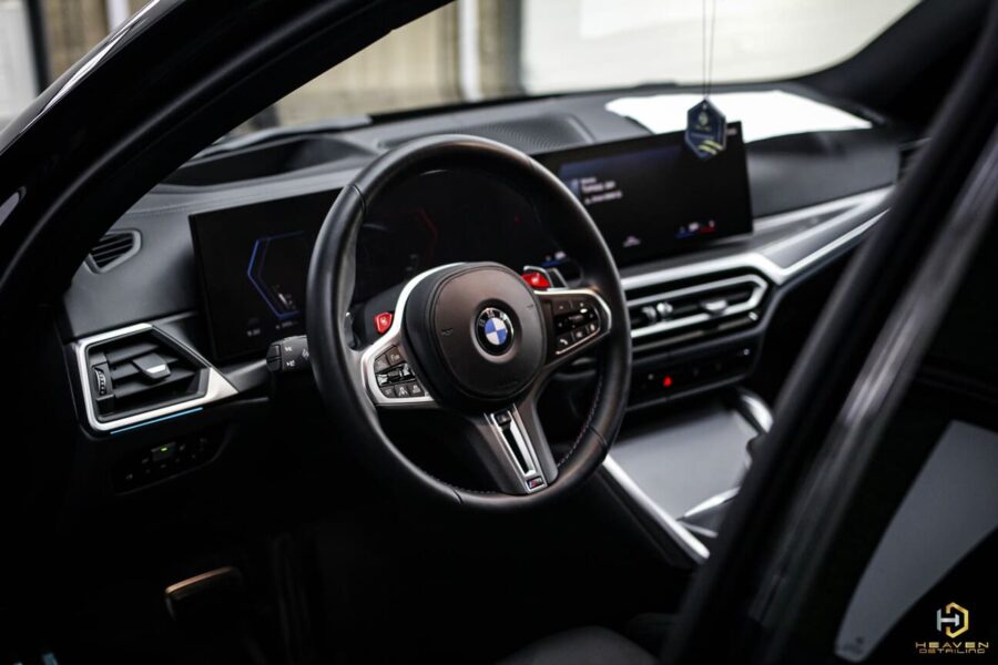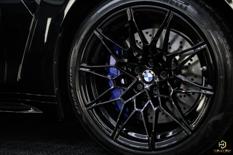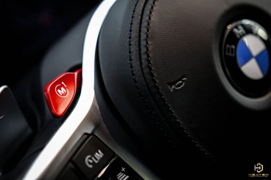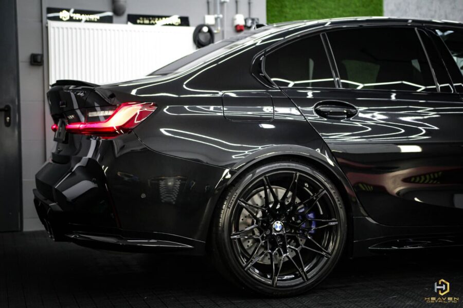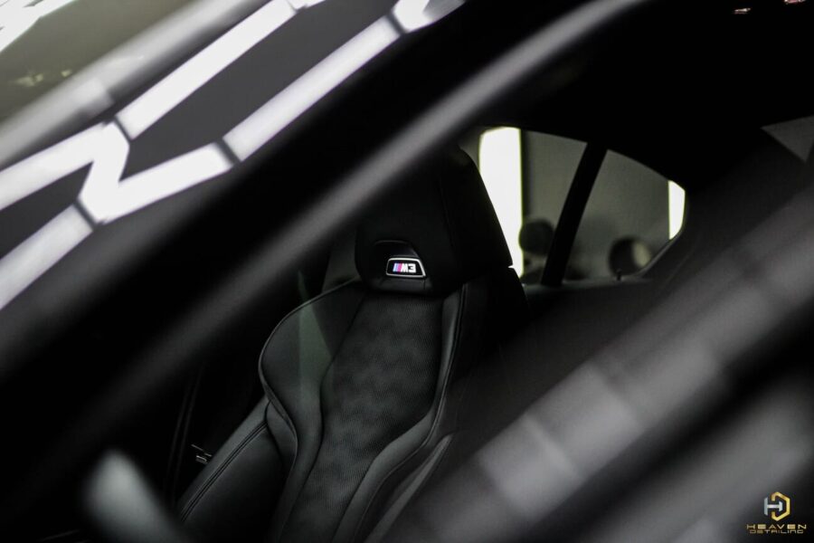 Bmw M3 w pełni oklejone folią bezbarwną wymagało tym razem wymiany kilku elementów folii z racji uszkodzeń eksploatacyjnych. Finalnie na folię oraz felgi zaaplikowaliśmy powłokę aby podbić jeszcze bardziej szklistość i nasycenie koloru a także ułatwić codzienną pielęgnację dzięki mniejszemu przywieraniu zabrudzeń. Wnętrzem zajęliśmy się w postaci czyszczenia oraz impregnacji tapicerki skórzanej.