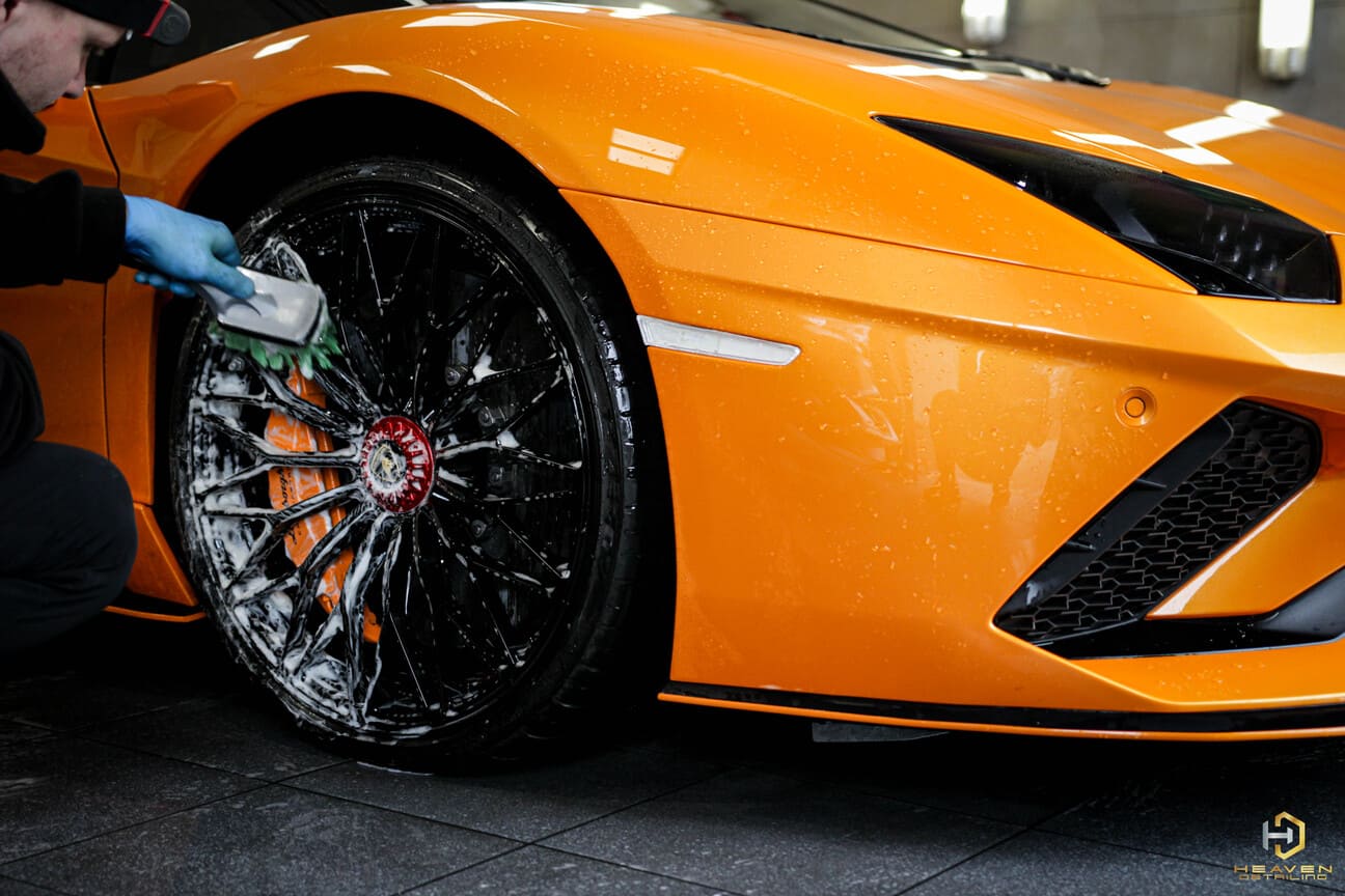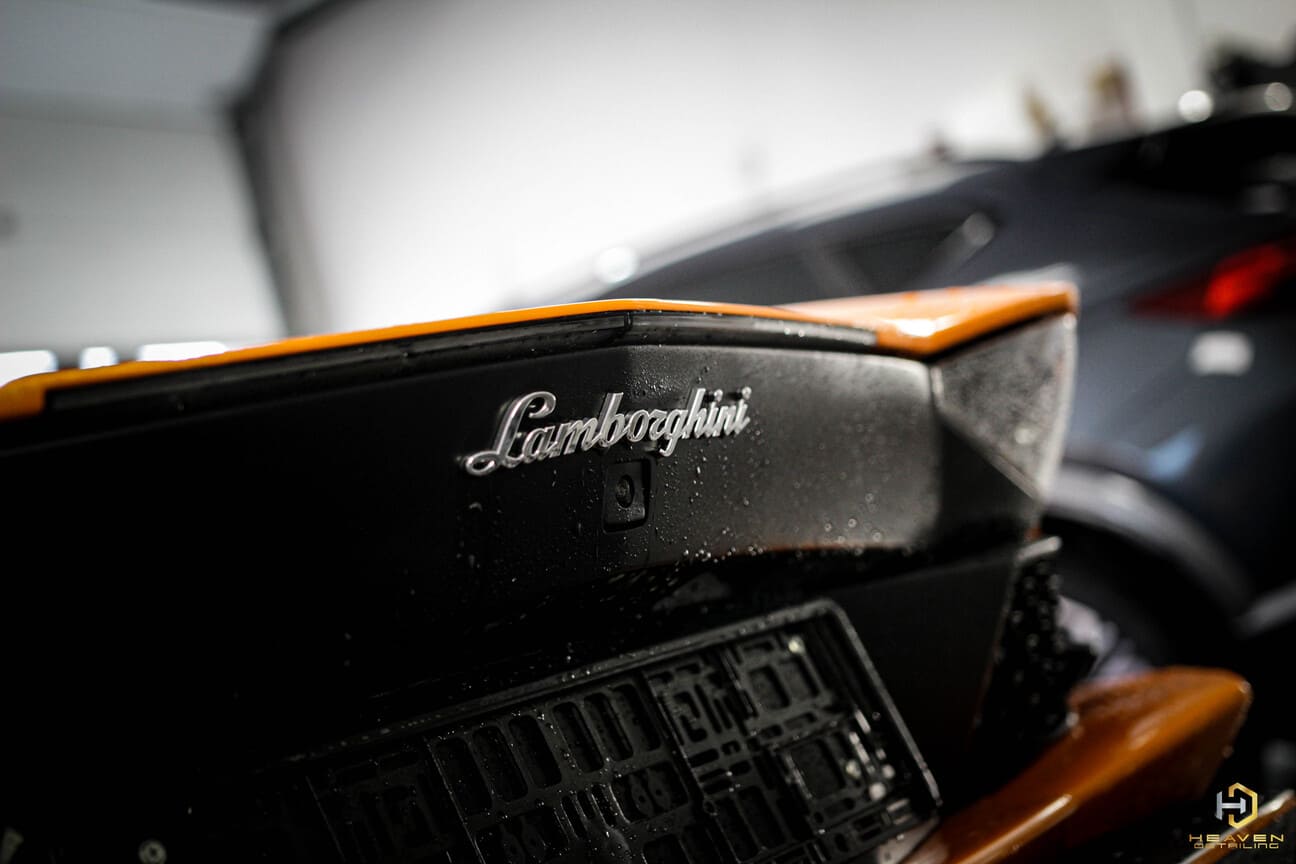 W Lamborghini zajęliśmy się pielęgnacją zewnętrzną oraz wewnętrzną, dodatkowo wykonując impregnację natryskową alkantary i tapicerki skórzanej, aby wydłużyć i zachować świeżość materiałów a także ułatwić codzienną pielęgnacje.